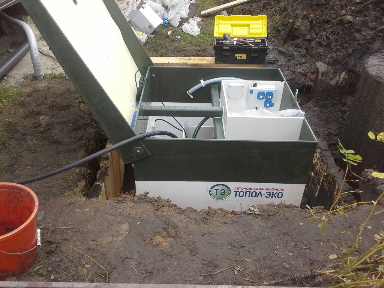 Монтаж ТОПАС 5 осуществляют в подготовленный котлован согласно монтажной схеме. Обсыпка производится песком без крупных фракций, дополнительное бетонирование корпуса не требуется.