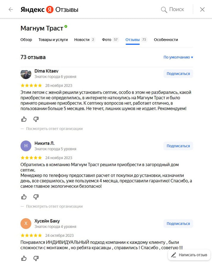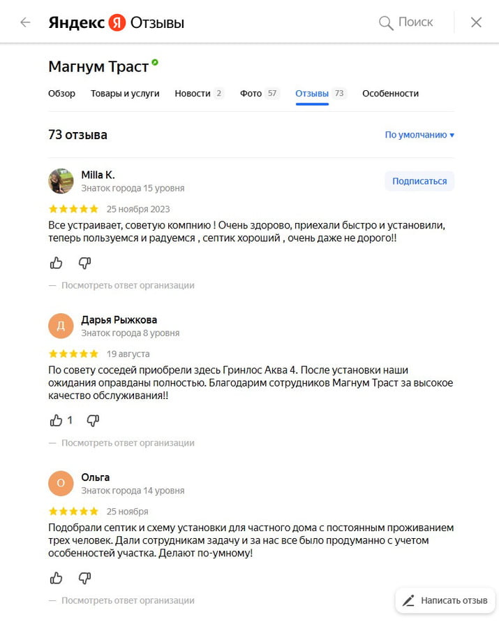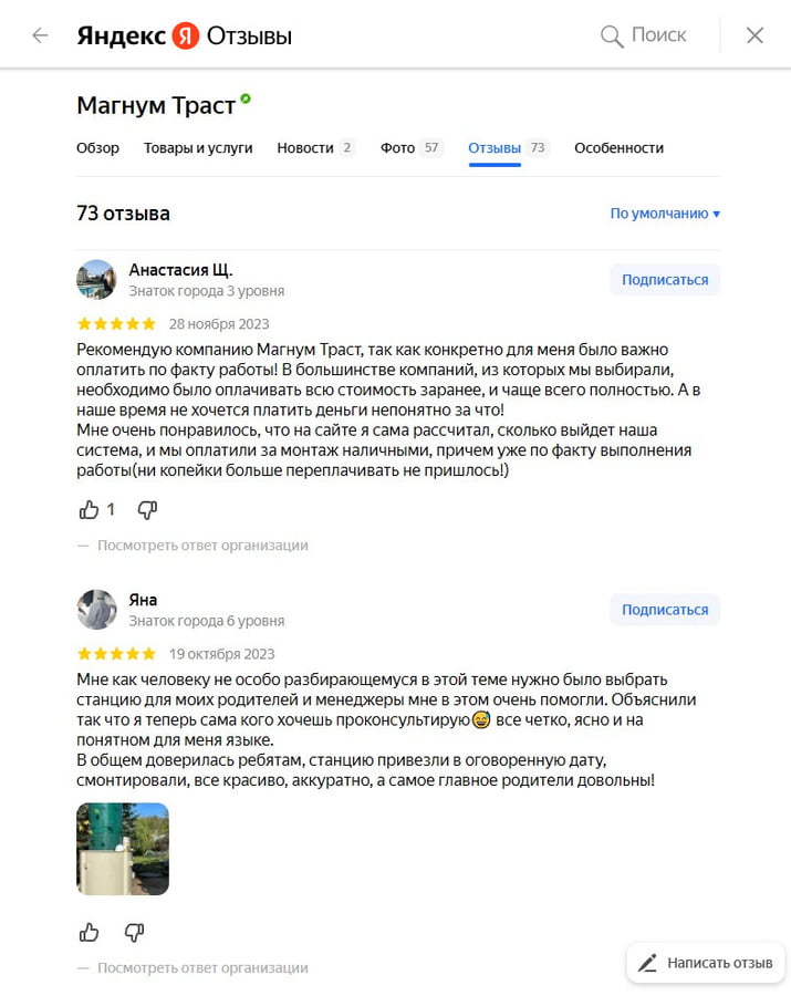 Отзывы о нас на Яндекс